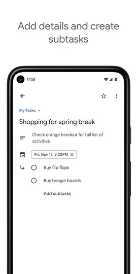 🌟 Google Tasks is a no-nonsense task management app that excels in simplicity and functionality. It's perfect for individuals and teams looking for a straightforward way to keep track of tasks and deadlines. The ability to create subtasks and due dates adds depth to your task organization. Seamless synchronization across devices and integration with Gmail and Google Calendar ensures you're always in the loop. Whether you're managing work-related projects or personal errands, Google Tasks is your go-to app for staying organized and productive. Simplify your task management and boost your efficiency with Google Tasks! 📝✨🚀