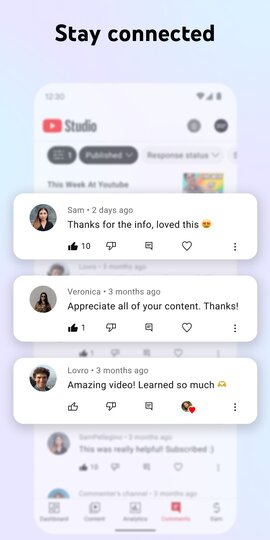 π YouTube Studio offers a comprehensive suite of tools to simplify the content creation and management process. Creators can upload and edit videos directly from the app, adding titles, descriptions, and thumbnails to make their content stand out. The analytics section provides valuable insights into video performance, audience demographics, and revenue data, allowing creators to fine-tune their content strategy. Engaging with your audience is made easy with real-time comments and notifications. You can also "download YouTube Studio" for on-the-go access to your channel's performance and audience interaction. It's your creative studio in your pocket! ποΈππ±